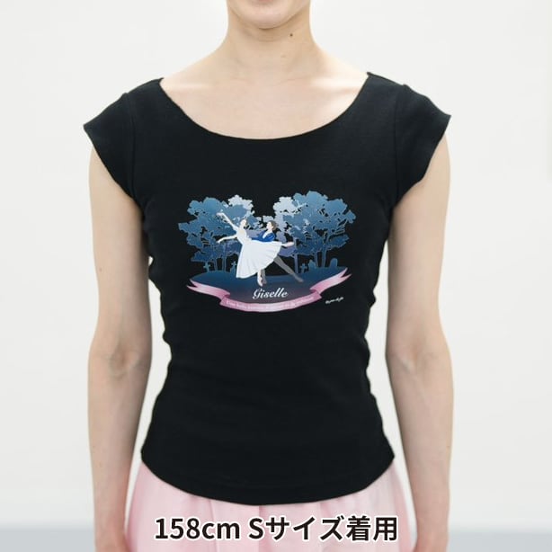 大きく開いた首元と短めの袖、切りっぱなしの袖と裾が特徴のレディース用Tシャツです。体にフィットする細身のシルエットでレオタードの上からも身体のラインがわかり、大変人気の商品です。